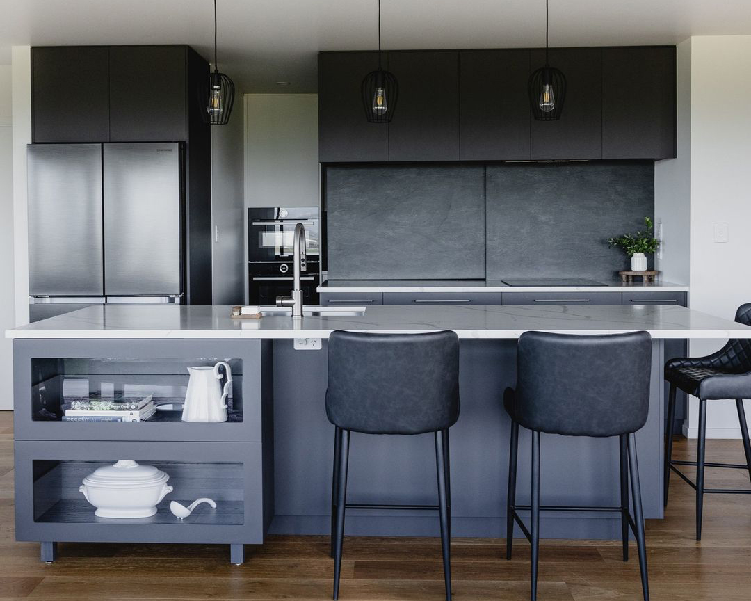 Brian upholstered stool styled in the hidden door kitchen by @beaverkitchens.