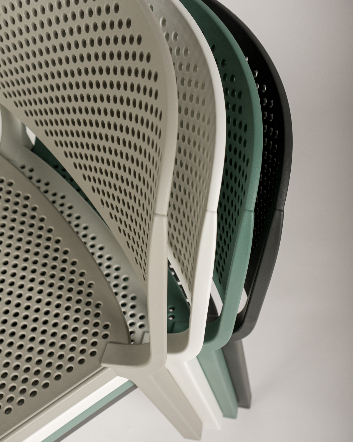 Polypropylene designs (indoor/outdoor): Lightweight, durable, and available in a wide range of colours. Popular choices include the Dome, Emi, and Kate chairs, perfect for cafés and outdoor seating.
