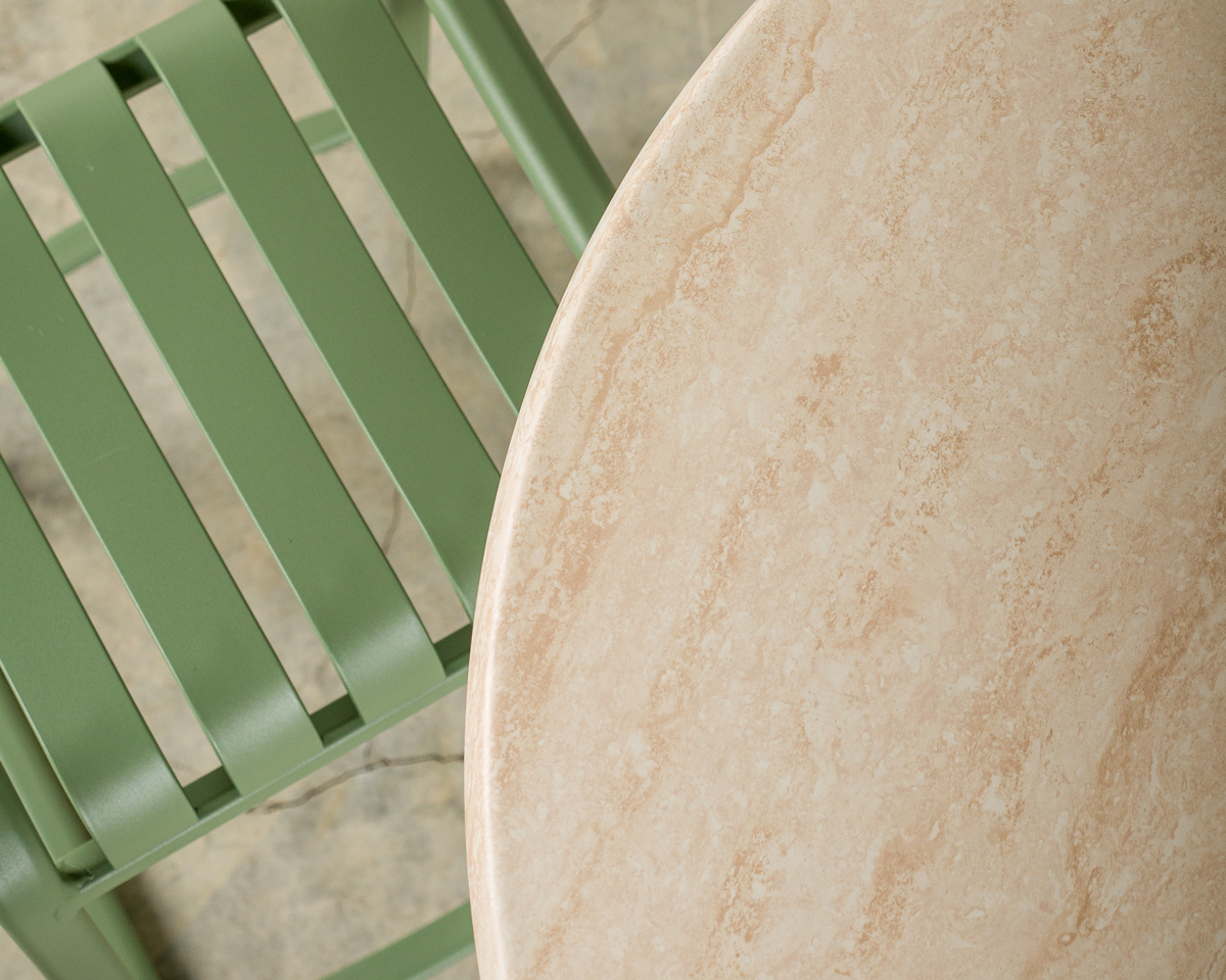 Indoor combination: Travertine top | Hydra Base | Icho chair.